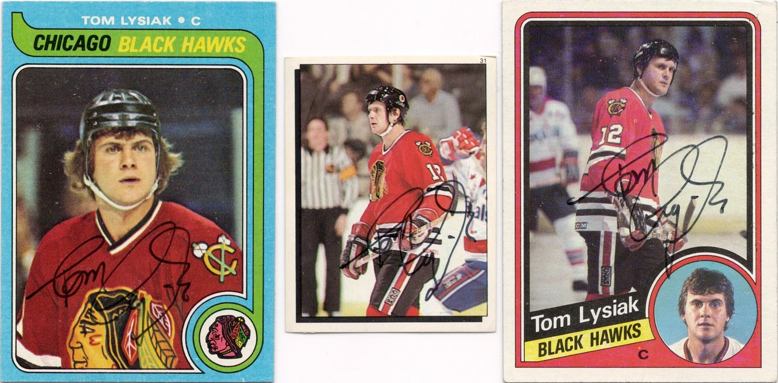 Item Received: 1984-85 Topps, 1985-86 Topps, 1991-92 Score Canadian. All signed in blue Sharpie.