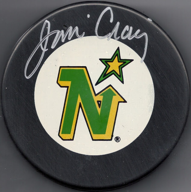 In strictly North Stars terms, this is a pretty obscure autograph. Still, it's one of the coolest early additions to my collection of North Stars pucks. Jim Craig is, of course, an Olympic legend. He was the goaltender who beat the Soviets. As the netminder of the 1980 "Miracle on Ice" team, he became an American legend. His immortal Olympic performance did not translate to NHL success. He appeared in 30 NHL games for three different teams from 1980-1984. The final three were with the North Stars during the 1983-84 season (he went 1-1-0 with a 4.91 Goals Against Average).